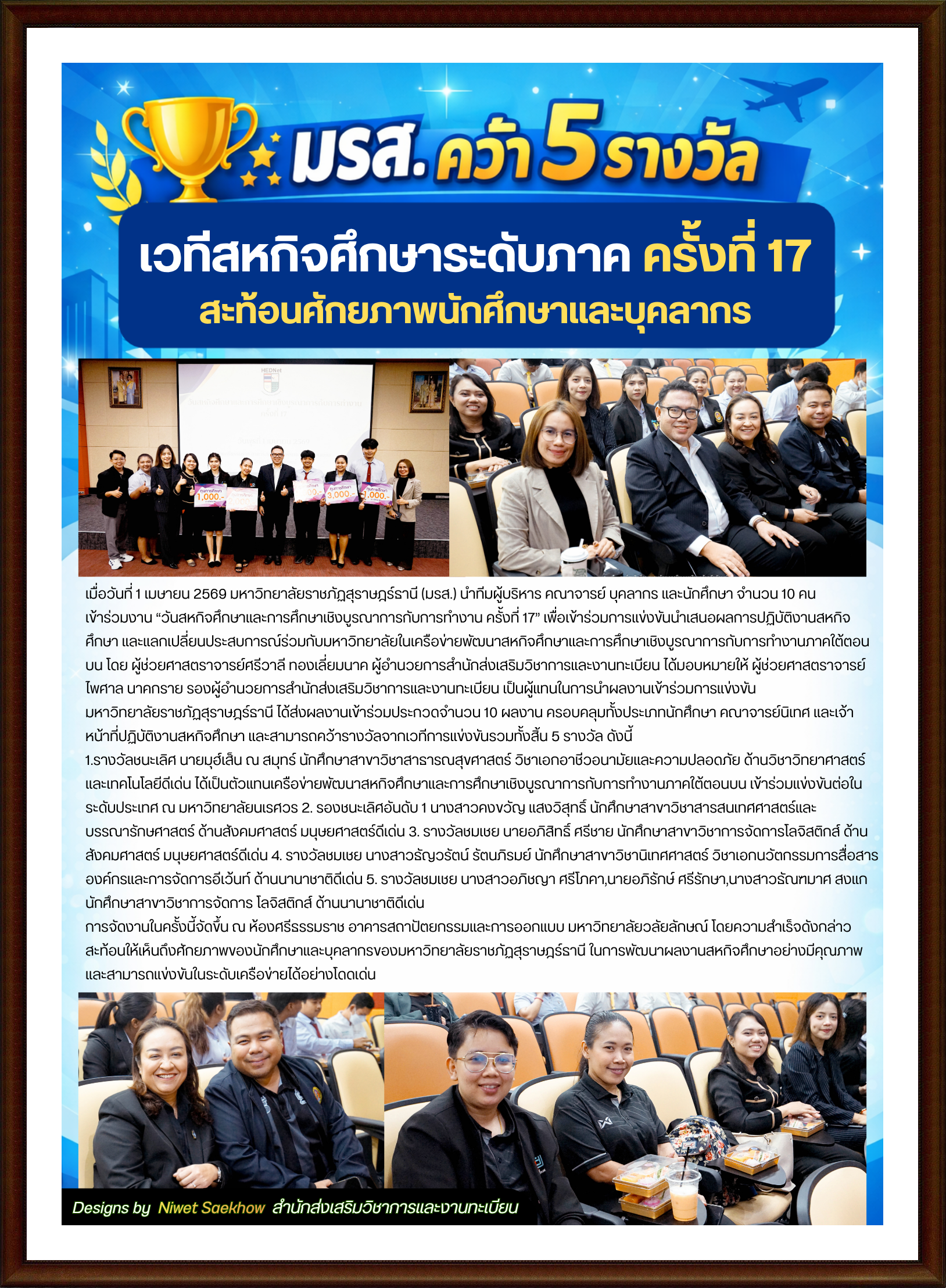 เมื่อวันที่ 1 เมษายน 2569 มหาวิทยาลัยราชภัฏสุราษฎร์ธานี (มรส.) นำทีมผู้บริหาร คณาจารย์ บุคลากร และนักศึกษา จำนวน 10 คนเข้าร่วมงาน “วันสหกิจศึกษาและการศึกษาเชิงบูรณาการกับการทำงาน ครั้งที่…