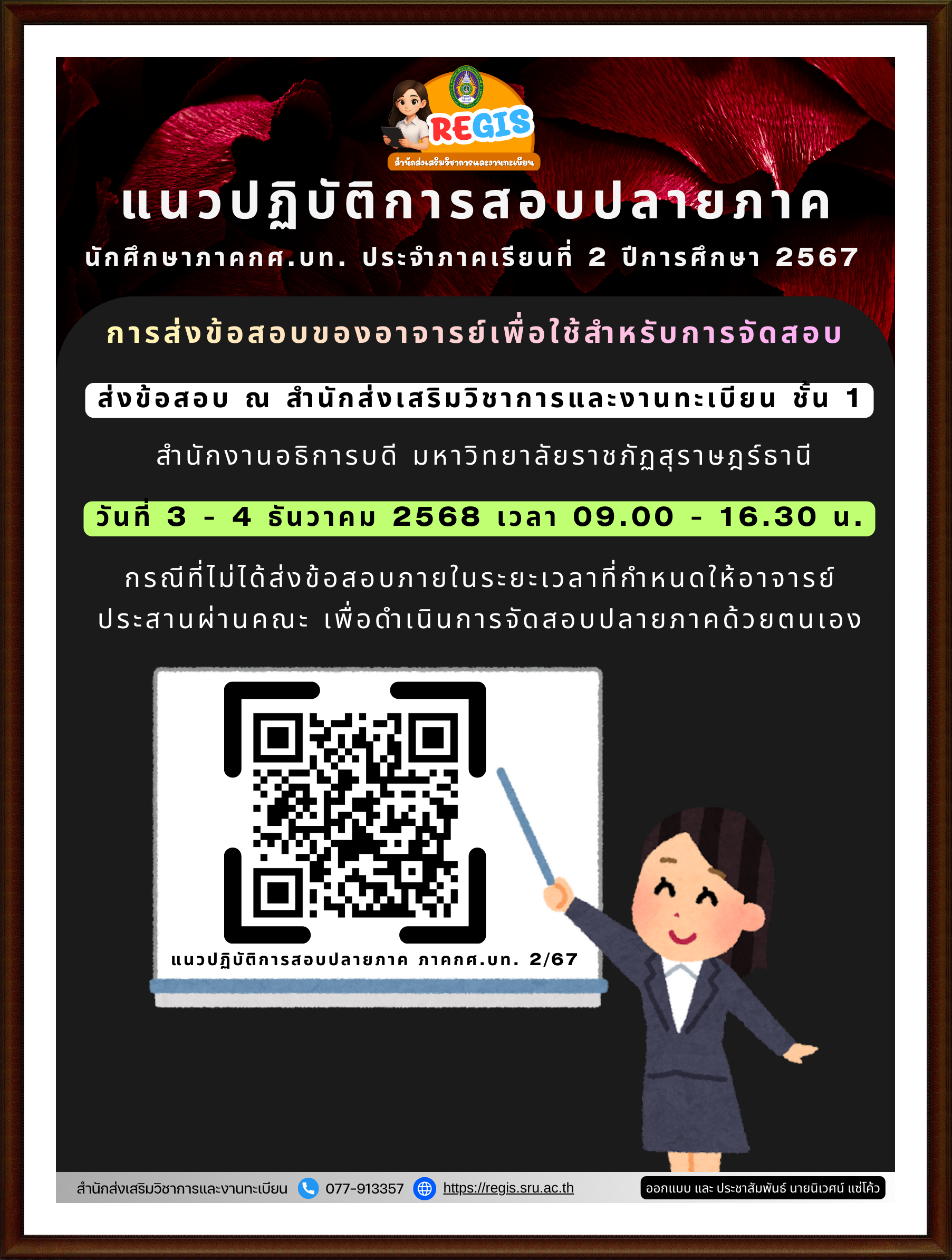 REGIS NEWS ประกาศด่วนจากสำนักส่งเสริมวิชาการและงานทะเบียน วันสุดท้ายของการส่งผลการแก้เกรด I สำหรับนักศึกษาภาคปกติ ประจำภาคเรียนที่ 1/2566 วันอาทิตย์ที่ 24 ธันวาคม 2566