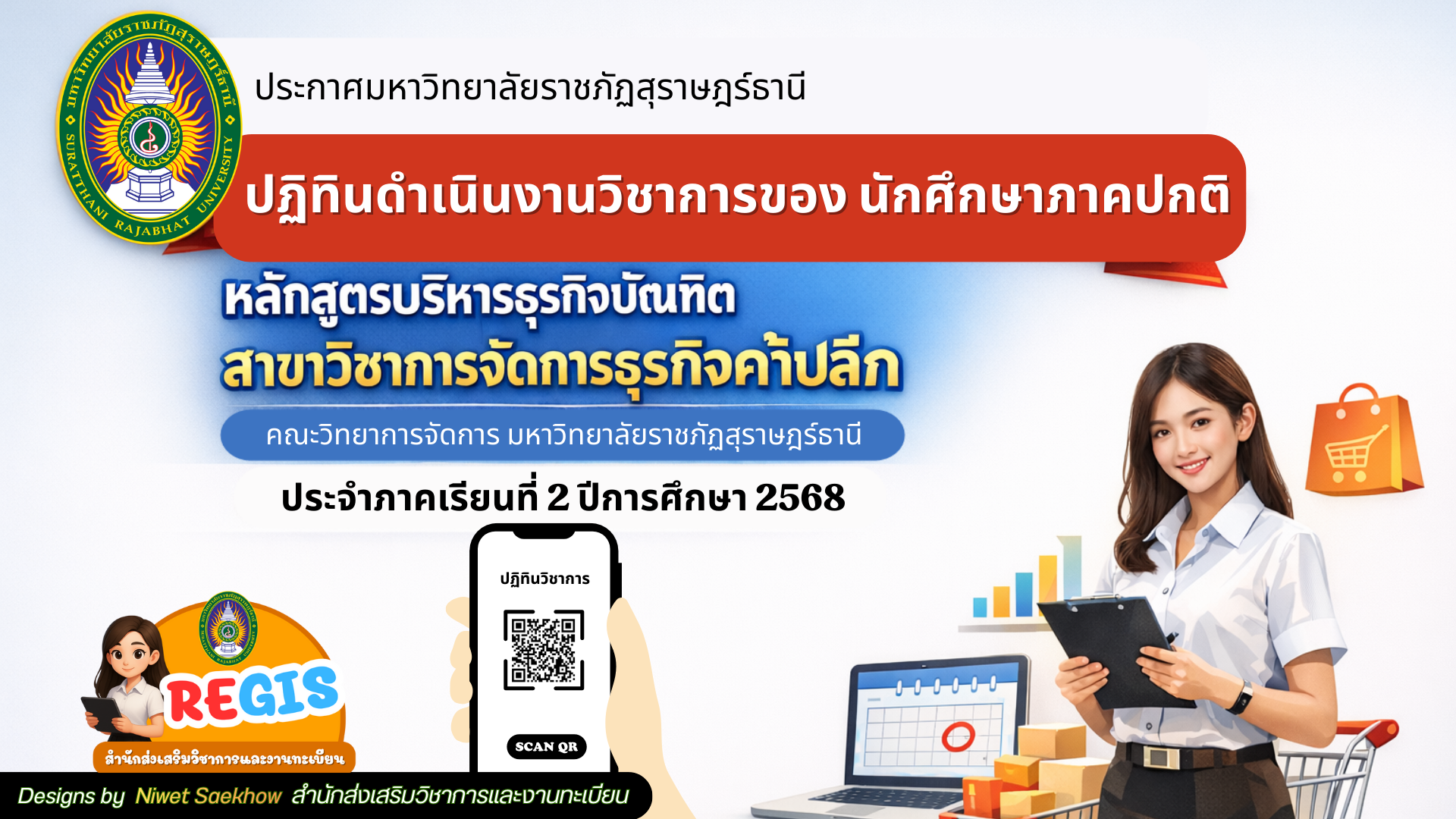 REGIS NEWS ประกาศด่วน ! งานทะเบียน มรส. สำหรับนักศึกษาภาคกศ.บท. 1/2567 นักศึกษาทุกชั้นปี เพิ่ม – ถอน เปิดพิเศษ รายวิชาเพิ่มเติม (เฉพาะนักศึกษาที่ลงทะเบียนผ่านระบบ REG และชำระเงินค่าธรรมเนียมการศึกษา เรียบร้อยแล้ว เท่านั้น) วันที่ 15 – 23 มีนาคม 2568