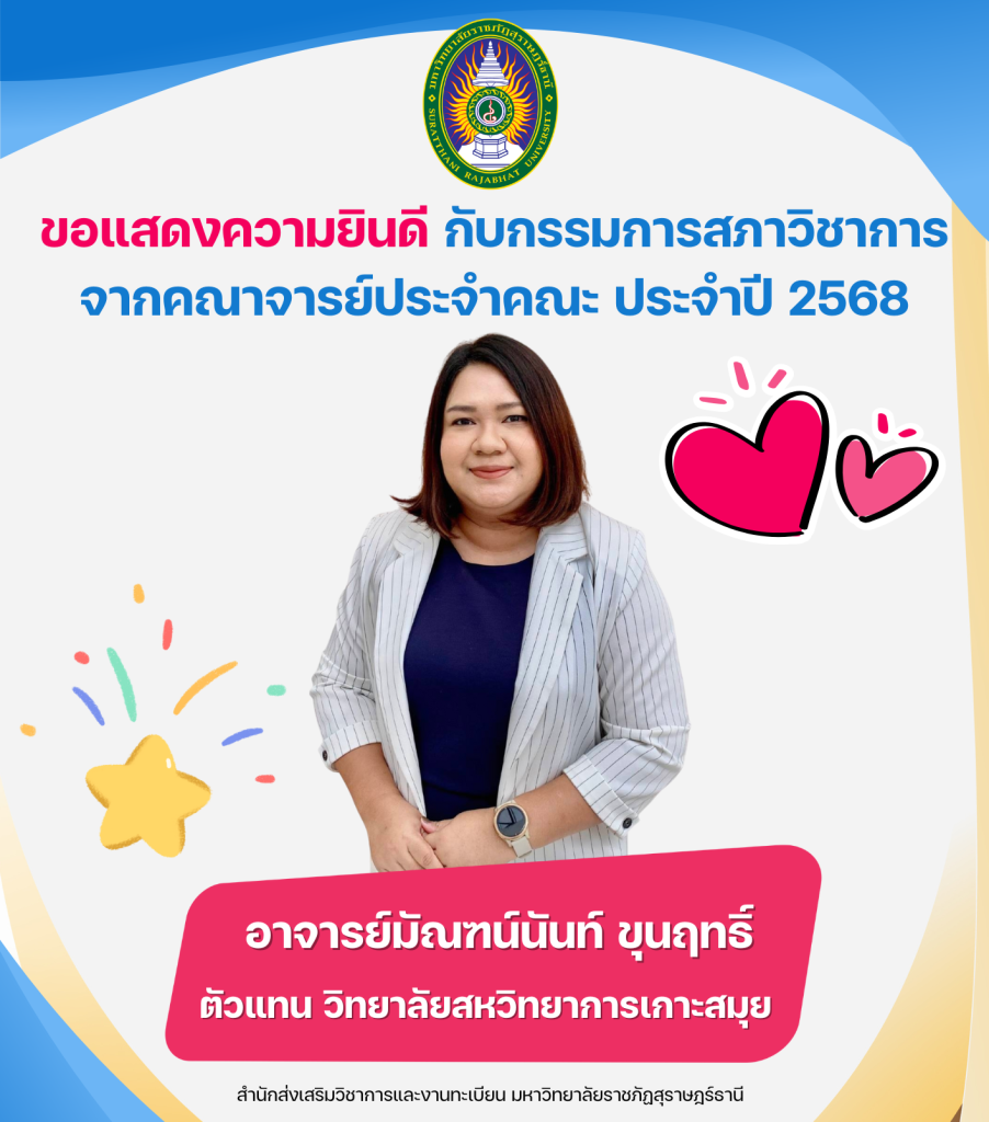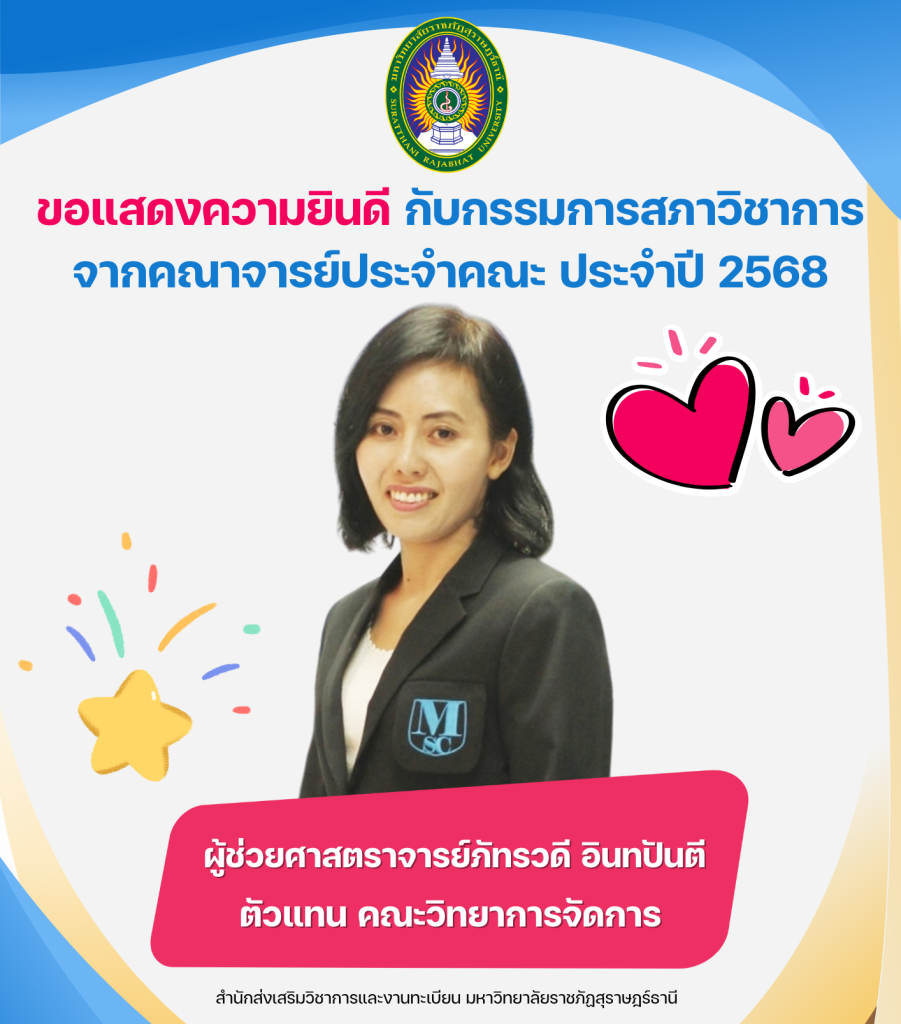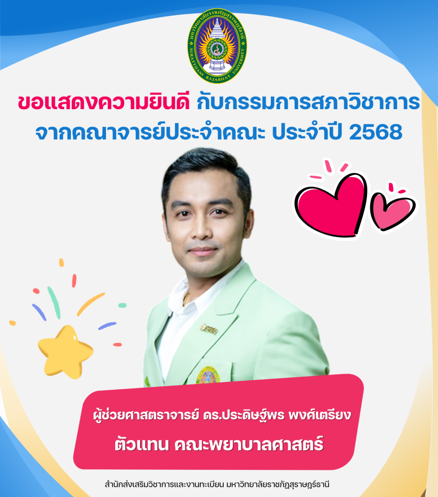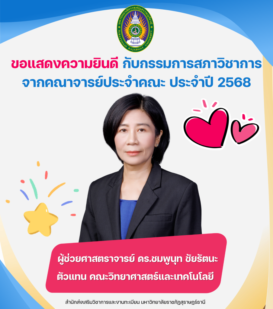 เมื่อวันจันทร์ที่ 6 ตุลาคม 2568 เวลา 13.30 น. สำนักส่งเสริมวิชาการและงานทะเบียนจัดประชุมสภาวิชาการ ครั้งที่ 13/2568 โดย ผศ.ดร.วัฒนา รัตนพรหม อธิการบดี มหาวิทยาลัยราชภัฏสุราษฎร์ธานี เป็นประธาน เปิดการประชุม พร้อมด้วย ผศ.ดร.ณัฐวุฒิ สุวรรณทิพย์ รองอธิการบดีฝ่ายวิชาการและบริหารทรัพยากรมนุษย์ ผศ.ศรีวาลี ทองเลี่ยมนาคผู้อำนวยการสำนักส่งเสริมวิชาการและงานทะเบียน และตัวแทนบุคลากรสำนักส่งเสริมวิชาการและงานทะเบียน เข้าร่วมประชุม พร้อมได้รับเกียรติจากผู้ทรงวุฒิ จากภายนอกและ ตัวแทนคณะกรรมการสภาวิชาการ จากคณะ ณ ห้องประชุมราชพฤกษ์ 3 ชั้น 3 สำนักงานอธิการบดี และ ผ่านระบบออนไลน์ cisco webex