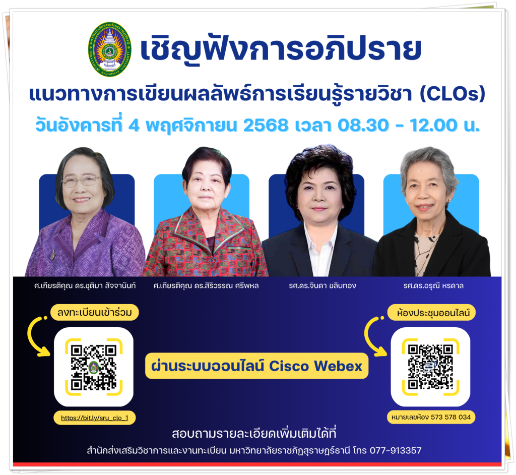 ลงทะเบียนเข้าร่วม https://bit.ly/sru_clo_1